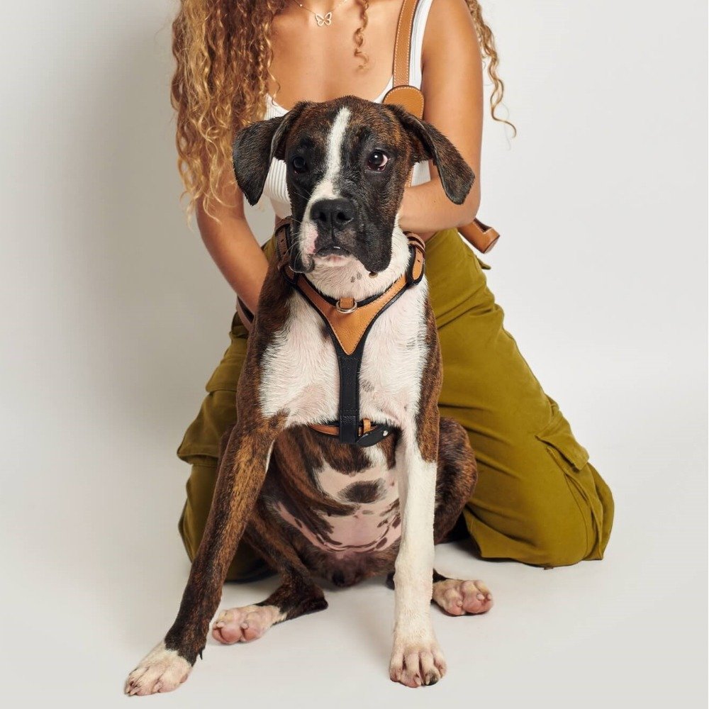 Le harnais Iron est un accessoire en cuir italien bicolore alliant luxe et ergonomie. Sa coupe en « Y » libère totalement les épaules de votre chien pour garantir une liberté de mouvement et un confort optimal.